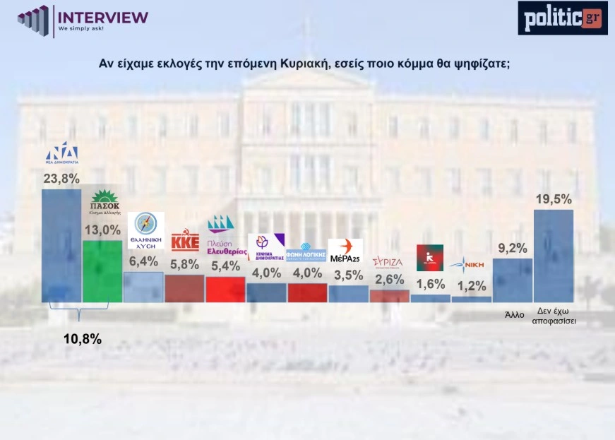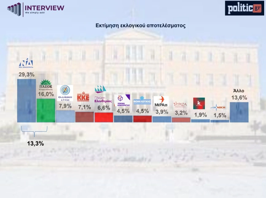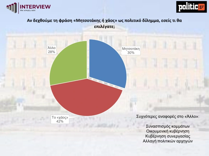 Δημοσκόπηση Interview για την POLITIC: Το «χάος» προηγείται του Μητσοτάκη στο δίλημμα «Μητσοτάκης ή χάος». Ο ΣΥΡΙΖΑ καταρρέει, η ΝΔ μένει στάσιμη, και το 45% ζητά νέες εκλογές