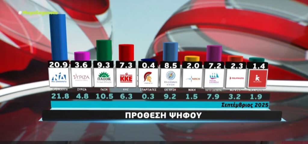 Η κυβέρνηση παραμένει πρώτη, αλλά χωρίς ρεύμα και χωρίς πίστη, η αντιπολίτευση δεν εμπνέει, και οι πολίτες δείχνουν πιο αποστασιοποιημένοι από ποτέ — με τον «Κανένας» να γίνεται το πιο δημοφιλές πολιτικό πρόσωπο της χώρας.