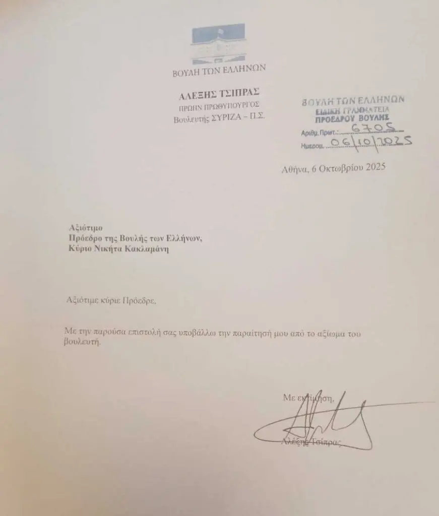 “Παραιτούμαι γιατί η Βουλή είναι δημοκρατικά απογυμνωμένη” – Η επιστολή που συντάραξε το πολιτικό σκηνικό
